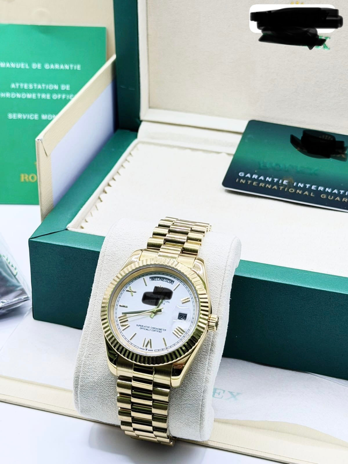 The ProfitPathway Day Date Roman numerals is designed for resellers and individuals seeking the luxury watch experience. This model combines sophisticated aesthetics with precise functionality, offering a high-quality timepiece that reflects the craftsmanship and prestige associated with luxury watches. Ideal for enhancing any collection or personal style.