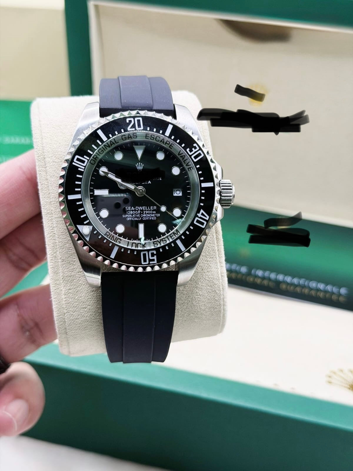 The ProfitPathway Oyster Deepsea Sea Dweller is engineered for durability and precision. With a robust black watch design, it is crafted to withstand extreme underwater conditions, ensuring reliable performance at depths of up to 4,000 feet (1,220 meters). This timepiece exemplifies expert craftsmanship in horology.